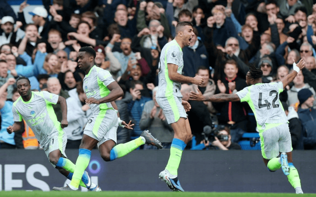 第57分钟,曼城再次取得进球!依然是谢尔基的助攻。谢尔基在禁区外横向带球摆脱防守球员,随即送出直塞球。格伊禁区内停球转身低射远角,球进了!切尔西陷入了绝境。第66分钟,帕尔默在禁区内包抄射门,被挡了出去。2分钟后,曼城再次进球。多库抢断后突入禁区,推射进球,球进了!第75分钟,胡桑诺夫远射踢偏。最终,切尔西0-3输给曼城。曼城赢下这场比赛后,让英超前2差距缩小,曼城在少赛一场的情况下,比阿森纳少6分。